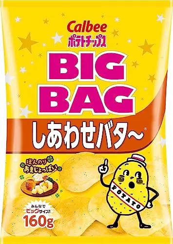 カルビーから登場したビッグバッグポテトチップス「しあわせバター」。 160gの大容量で、たっぷりと楽しめます。