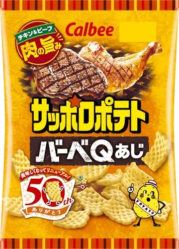 サッポロポテトのバーベキュー味です。 網をイメージした網目状の食感が特徴です。