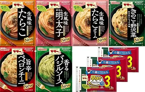 マ・マー レンジで簡単 マ・マー早ゆでスパゲティ小鍋でつくれる2/3サイズ400g1.6mm(4食分)×3袋&あえるだけパスタソース2人前×6種類食べ比べセット(たらこ、からし明太子、たらこクリーム、きのこと野沢菜、ペペロンチーニ、バジルソース) 【セット買い】