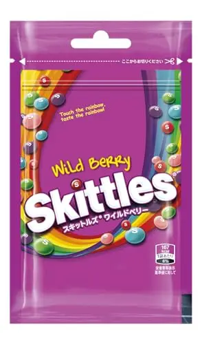 マースのスキットルズワイルドベリーは、カリっとした食感が楽しいソフトキャンディです。