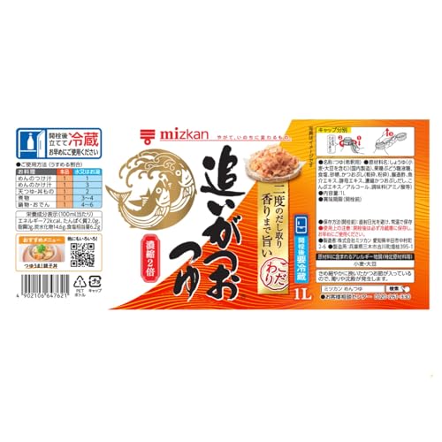ミツカンの「追いがつおつゆ2倍」は、濃厚なかつおの風味が特徴のめんつゆです。