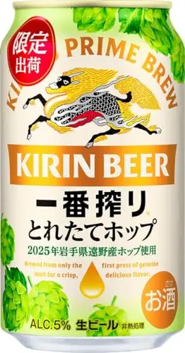 キリンの「一番搾り ビール350ml×24本」は、今年とれたての岩手県遠野産ホップを贅沢に使用しています。