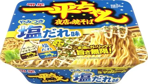 明星 一平ちゃん夜店の焼そば やみつき塩だれ味[12個入、カップ麺、焼きそば、いっぺん食べたらやめられない、マヨビーム、ごま油とガーリックで旨さ無限!、130g]