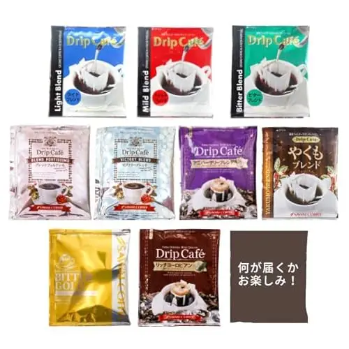 【内容量】ドリップバッグコーヒー ( ライトブレンド 8g×10袋 / マイルドブレンド 8g×10袋 / ビターブレンド 8g×10袋 / やくもブレンド 8g×10袋 / ブレンドフォルテシモ 8g×10袋 / ビクトリーブレンド 8g×10袋 / アニバーサリーブレンド 8g×10袋 / リッチヨーロピアン 8g×10袋 / ビターゴールド 7g×10袋 / ??? ?g×10袋 )