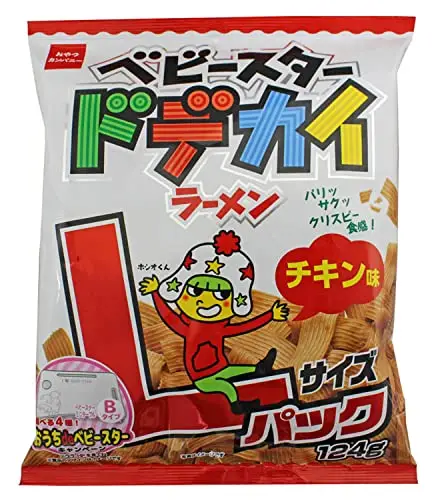 ✅【ロングセラーの味わい】 発売以来愛され続けるベビースターラーメン チキン味。ベビースター ドデカイラーメンはチキンと野菜の旨味が絶妙に合わさった風味はそのままに、大きく食べやすい幅広形状が特徴! おやつラーメンとして世代を超えておすすめのスナック菓子です。124g入りのLサイズはスナックとして一人で楽しむのも、イベントでシェアするのにもぴったり。