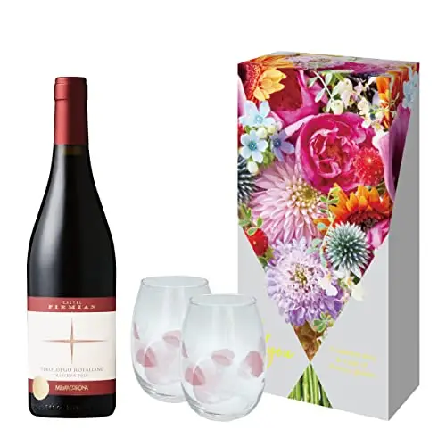 青山フラワーマーケットデザイン ペアグラス付ワイン ギフト メッツァコロナ カステル・フィルミャン テロルデゴ・ロタリアーノ リゼルヴァ [ 赤ワイン フルボディ イタリア 750ml ] [ギフトBox入り]