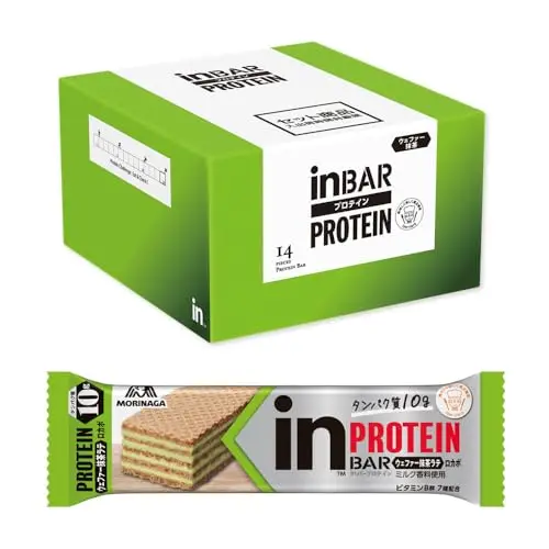 inバー プロテイン 抹茶ラテ (14本入×1箱) プロテインバー ウェファー 高タンパク10g ロカボ ビタミンB群7種 森永製菓 【Amazon.co.jp限定】