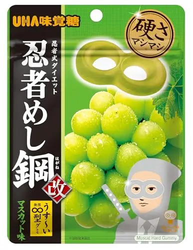 UHA味覚糖の「忍者めし鋼 マスカット」は、噛みごたえマシマシにレベルアップしたグミです。