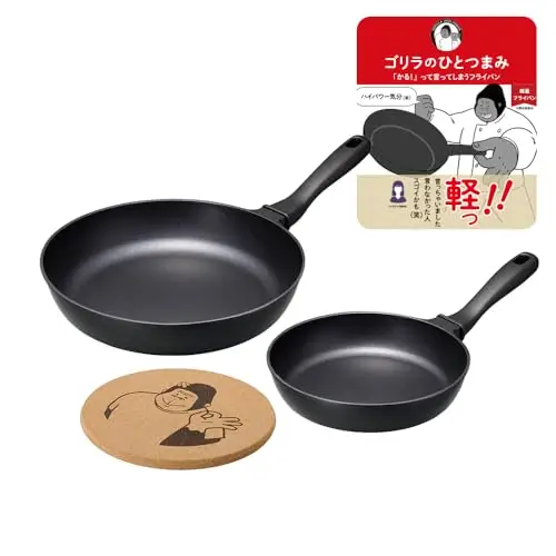 【かる!って言ってしまうフライパン】 ごりらのひとつまみ フライパンセット 3点セットA (フライパン20㎝ 26㎝ 鍋敷き) ガス火専用 PFOAフリー 軽い 福袋 ドウシシャ