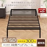 【5年保証】 ベッドフレーム ゼミダブル 3段階高さ調整 すのこベッド ヘッドレス ベッド 耐荷重300kg パイプベッド 幅120×長さ197cm×高さ6.3/20/35㎝ 頑丈 耐久性 通気性 組立簡単