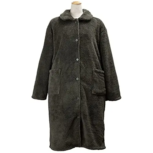 アイリスプラザの着る毛布で、冬の寒さを優雅にしのぎませんか。モスグリーンの落ち着いた色合いが上品な印象を与えます。