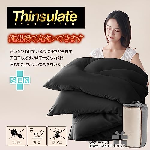 シンサレート 掛け布団 掛けふとん シングル ふとん 羽毛より暖かい 増量タイプ あったか 洗える かけふとん 軽量 通気 かけ布団 ほこりが出にくい 防ダニ 抗菌防臭 アレルギー対策 身体にやさしくフィット 150x210cm ブラック
