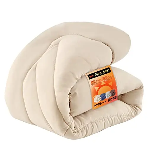 シンサレート掛け布団は、薄く軽いのに羽毛より暖かい高機能中綿素材を使用。保温力は一般的な掛け布団の約2倍です。