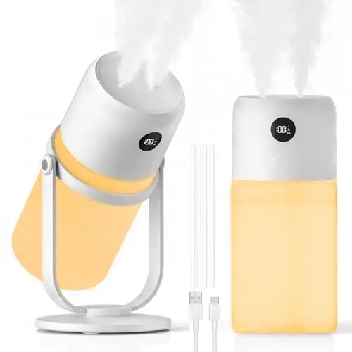 加湿器 小型 卓上 超音波式【2025冬モデル・コードレス加湿器|360°角度調整・LCD残量表示】USB充電式 ダブル噴霧 25dB静音 300ml大容量 暖色LEDライト タイマー 空焚き防止 ポータブル 6畳対応 寝室 オフィス 車用 乾燥/花粉/肌荒れ対策 誕生日/新年 プレゼント