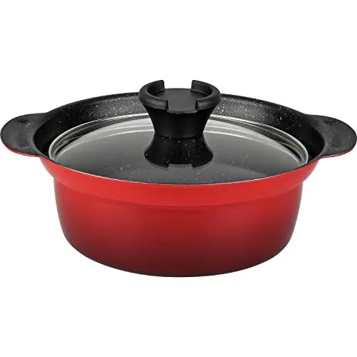 和平フレイズ 土鍋より軽くて丈夫 マーブルコート 卓上鍋 18cm 6号サイズ 1~2人用 IH・ガス対応 ガラス蓋付 紅丈膳 RB-1673