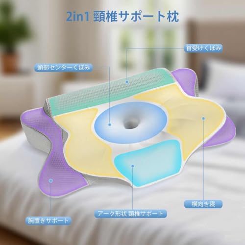 安眠枕 首痛み緩和 洗える冷却カバー 快眠枕 横向き・仰向きサポート 肩 首 フィット まくら 快眠 横寝枕 横向き寝 うつ伏せ寝 仰向け寝 安眠 よく眠れる 父の日・母の日・誕生日プレゼント