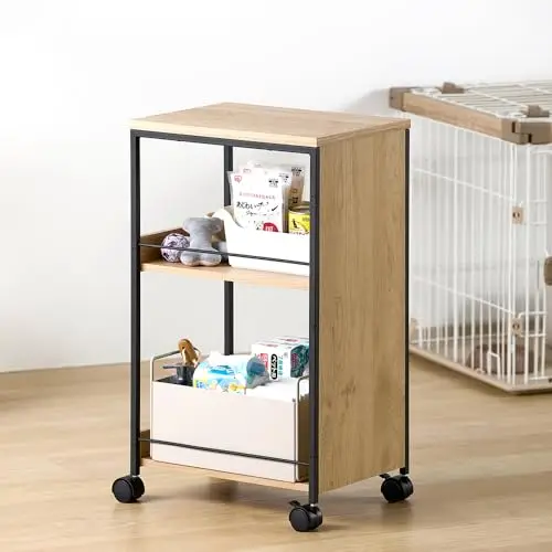 アイリスオーヤマ スペパ 目隠しワゴン キッチンワゴン 収納カート ワイド スペースを有効活用 幅32.3×奥行き39.6×高さ68cm HMW-300 ナチュラル/ブラック 【HIROBIROシリーズ】
