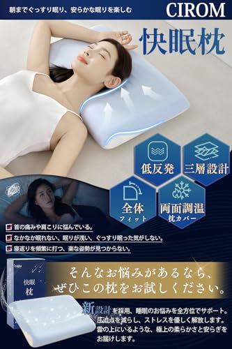 独自開発の三層構造が首を理想的な位置に支え、深い眠りへと導くCIROM低反発枕。