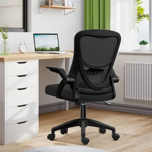 [EdoErgo] オフィスチェア 椅子 テレワーク 疲れない 跳ね上げ式アームレスト コンパクト 約105度ロッキング pc 事務椅子 360度回転 座面昇降 強化ナイロン樹脂ベース 通気性メッシュ 在宅ワーク H-WY01 (黒網+黒枠+黒足)
