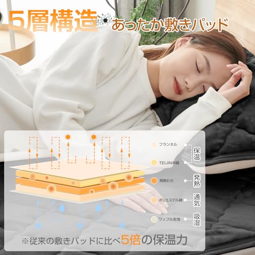 fuwawa 敷きパッド シングル 冬用 シーツ あったか 五層式 【TEIJIN マイティトップ中綿使用】 ベッドパッド フランネル 抗菌・防臭・防ダニ加工 静電気抑制 オールシーズン 敷パット ふわふわ 洗える ゴム付き マットレスパッド 100X200cm ブラック