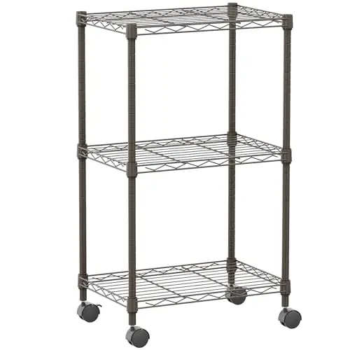 IZEUK スチールラック キャスター付き 3段 高さ伸縮メッシュ 収納棚 防錆加工 パイプ棚 スリム ポール径19.1mm パーツ対応 全体耐荷重120kg 幅45cm×奥行30cm×高さ72.4/75.7cm(車輪の高さを含む) 頑丈 ワイヤーシェルフ メタルラック ブラウン オシャレでかわいい 業務用/玄関/リビング/リビング/ランドリー/浴室/キッチン 4個アジャスター付属