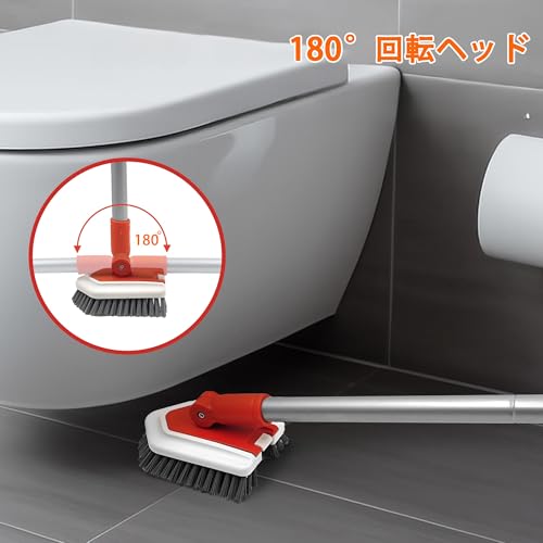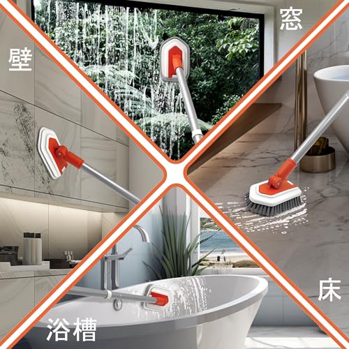 JEHONN デッキブラシ掃除用ブラシ伸縮ロング106-130cm,浴室の浴槽の流しの床の壁のための4つの異なったお風呂掃除 ブラシの頭部