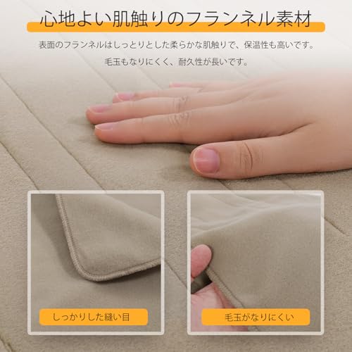 高温設定でダニ退治が可能で、本体は丸洗いできるため清潔を保てます。柔らかいフランネル素材で保温性が高く、