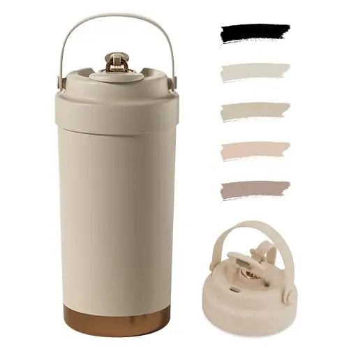 SKIASE タンブラー ストロー付き セラミックコーティング 水筒 500ml 取っ手付き 持ち運び 直飲み 蓋付き こぼれない ステンレス製 保冷 保温 コーヒー 炭酸対応 洗いやすい 女の子 男の子 子供 人気 おしゃれ ダークピンク