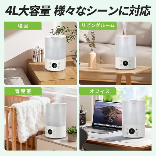 乾燥が気になる季節に最適な4L大容量の超音波加湿器です。