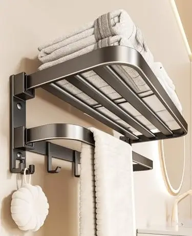 【アルミ製】タオルラック 壁掛け式 多機能バスルーム収納棚 グレー 耐久防水 折りたたみ式 省スペース収納タオルハンガー フック付き フェイスタオル・バスタオル・洗面所収納 シンプルモダンデザイン ¥1,000 100ポイント 4週間前 1月2日22時54分 ホーム&キッチン ホーム&キッチン