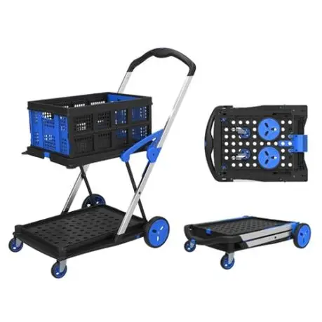 ZXZMX 台車 平台車 折りたたみ式バスケット付き ポータブル 軽量 コンパクト 省スペース 二重層 底に車輪付き 調節可能なハンドル 上部耐荷重40kg 下部耐荷重50kg 車載用 アウトドア用 スーパーマーケット用 ショッピング用 ¥600 18ポイント 4週間前 1月1日2時41分 ホーム&キッチン ホーム&キッチン