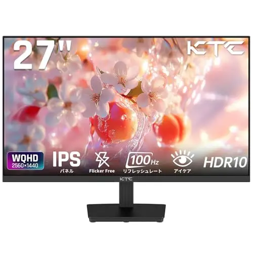 KTC 27インチ モニターWQHD(2560×1440) 100Hz IPSパネル HDR10 Adaptive Sync sRGB116% 300cd/m² HDMI 2.0×2 DP 1.4×1 フリッカーフリー Softeware LBL 省エネ設計 目に優しい設計 VESA対応100mm×100mm ビジネス/取引/グラフィック/映画 3年保証 H27T27