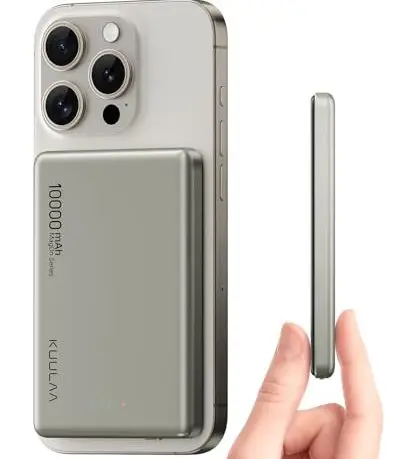 Kuulaa モバイルバッテリー マグセーフ薄型 小型 軽量(史上最薄10.7mm, 10000mAh)【MagSafe対応マグネット式/タイプC PD20W/iPhone12~16対応】PSE認証