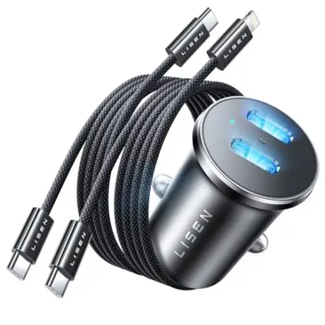 LISEN シガーソケット USB – C カーチャージャー【90W デュアルポート 急速充電】 2 連 PD45W 2 本ケーブル付き 増設 ミニ・省スペース設計 対応 iPhone17、Samsung、Sharp、Google、Huawei、iPad Pro/Air 等多機種 車載充電器 多車種にも対応 20%OFF ¥2,480 ¥1,980 99ポイント 2か月前 10月16日10時15分 家電&カメラ 家電&カメラ SHARPiPhoneiPadHUAWEI
