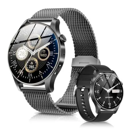 (0.9)AGM Legion Pro スマートウォッチ GPS搭載 1.43インチAMOLEDディスプレイ Bluetooth通話対応 iOS/Android両対応 100種類以上のスポーツモード 心拍数・睡眠モニタリング 50m防水 耐衝撃設計 長時間バッテリー 着信通知 音楽再生 天気予報 カメラリモコン 男女兼用 交換用ベルト2本付き