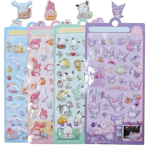 3 D立体シール【4枚組】ふっくらかわいいおしゃれステッカー女の子携帯電話の飾り付け用ご褒美子供に貼れるプレゼントDIY用手帳用日記用手芸用品